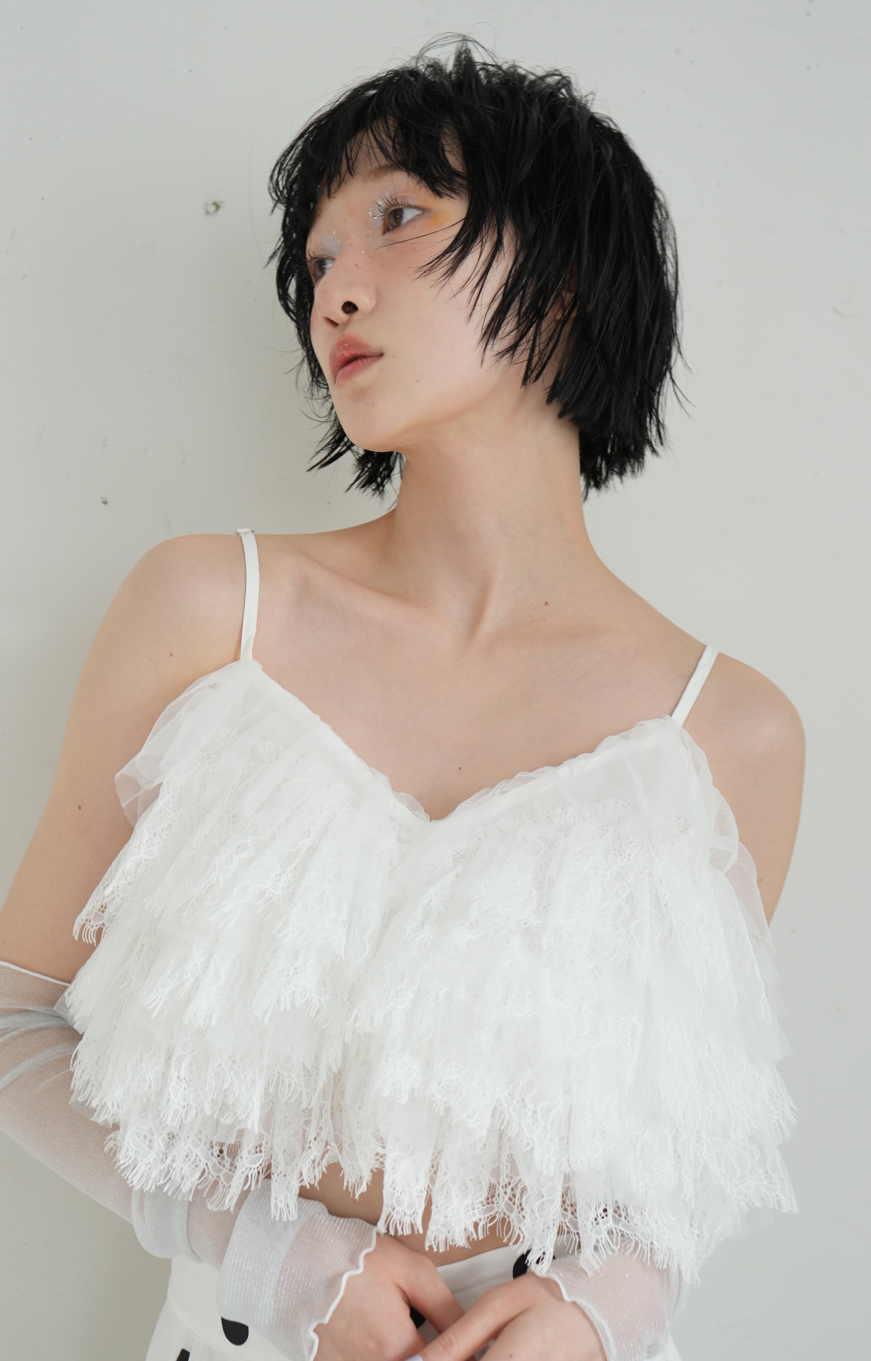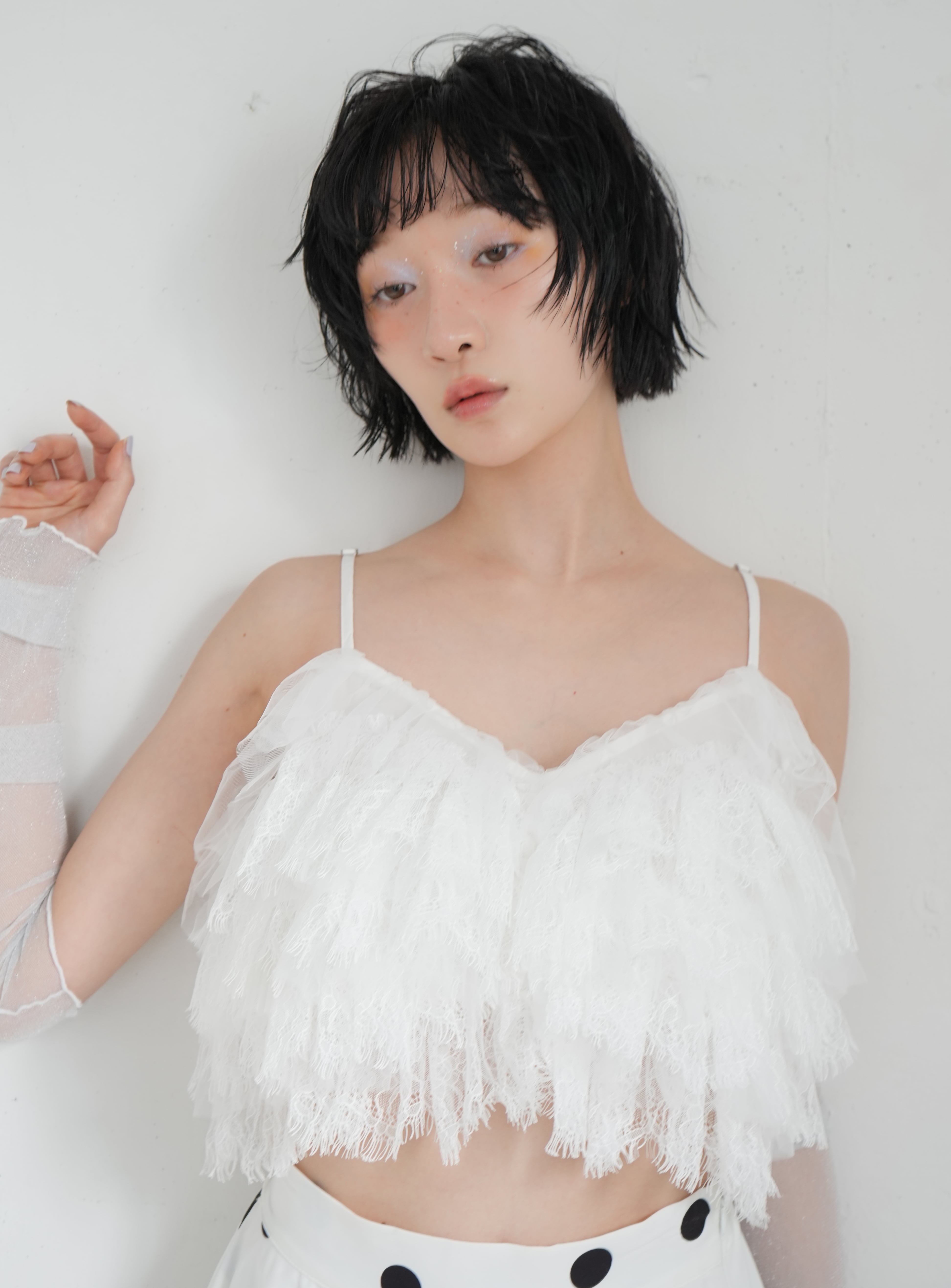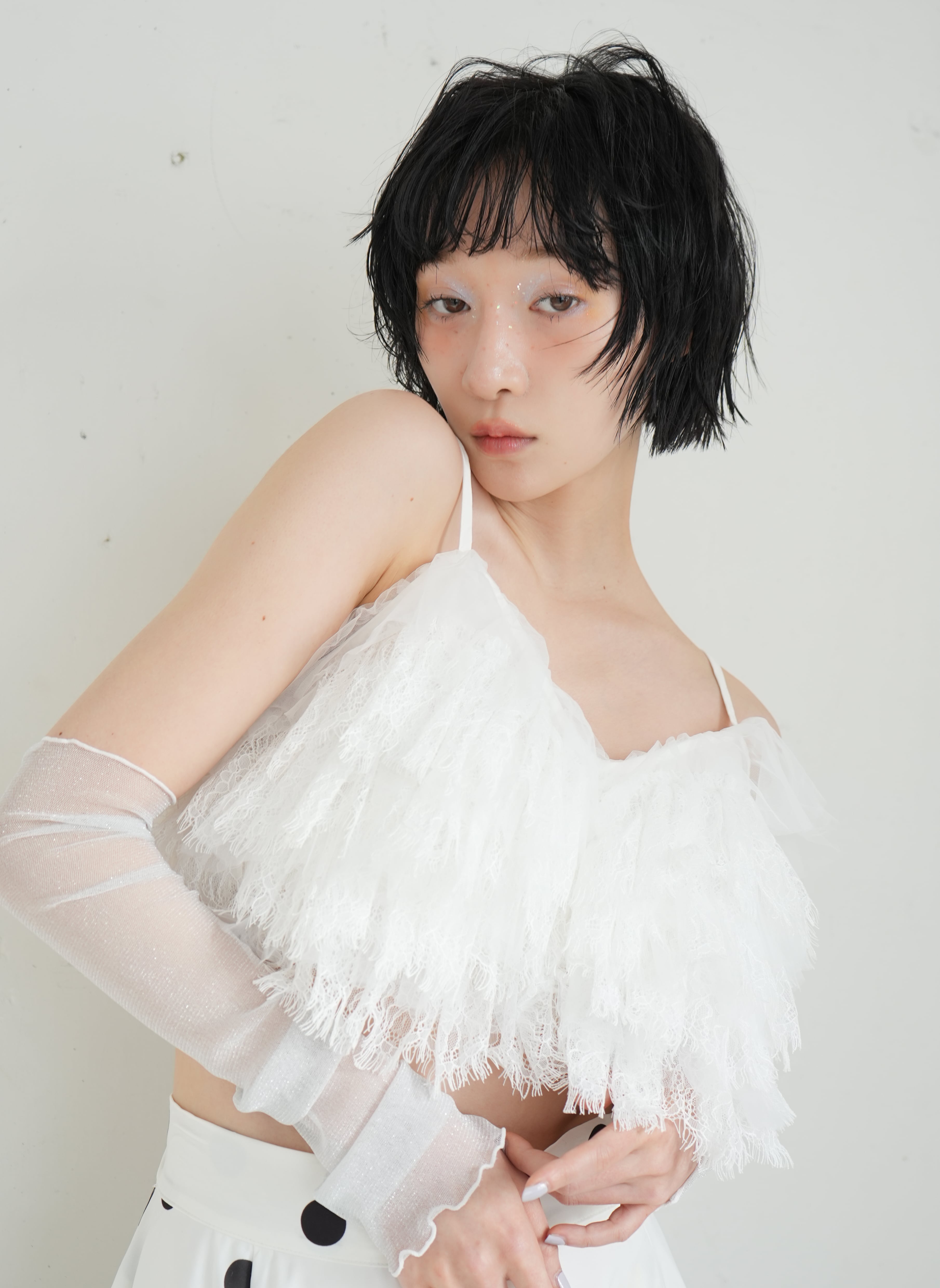 立体感のあるシルエットが魅力のフリルビスチェ。