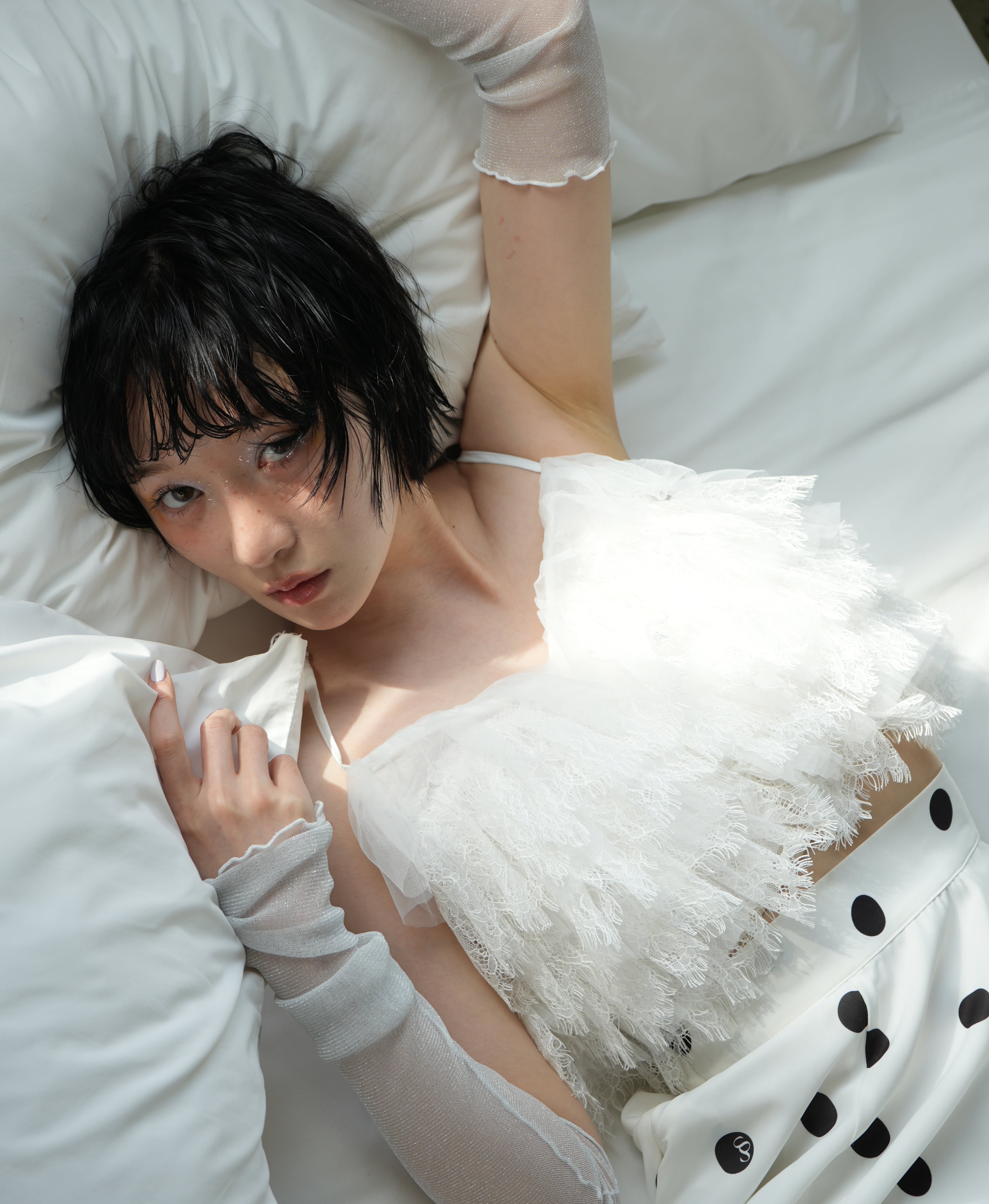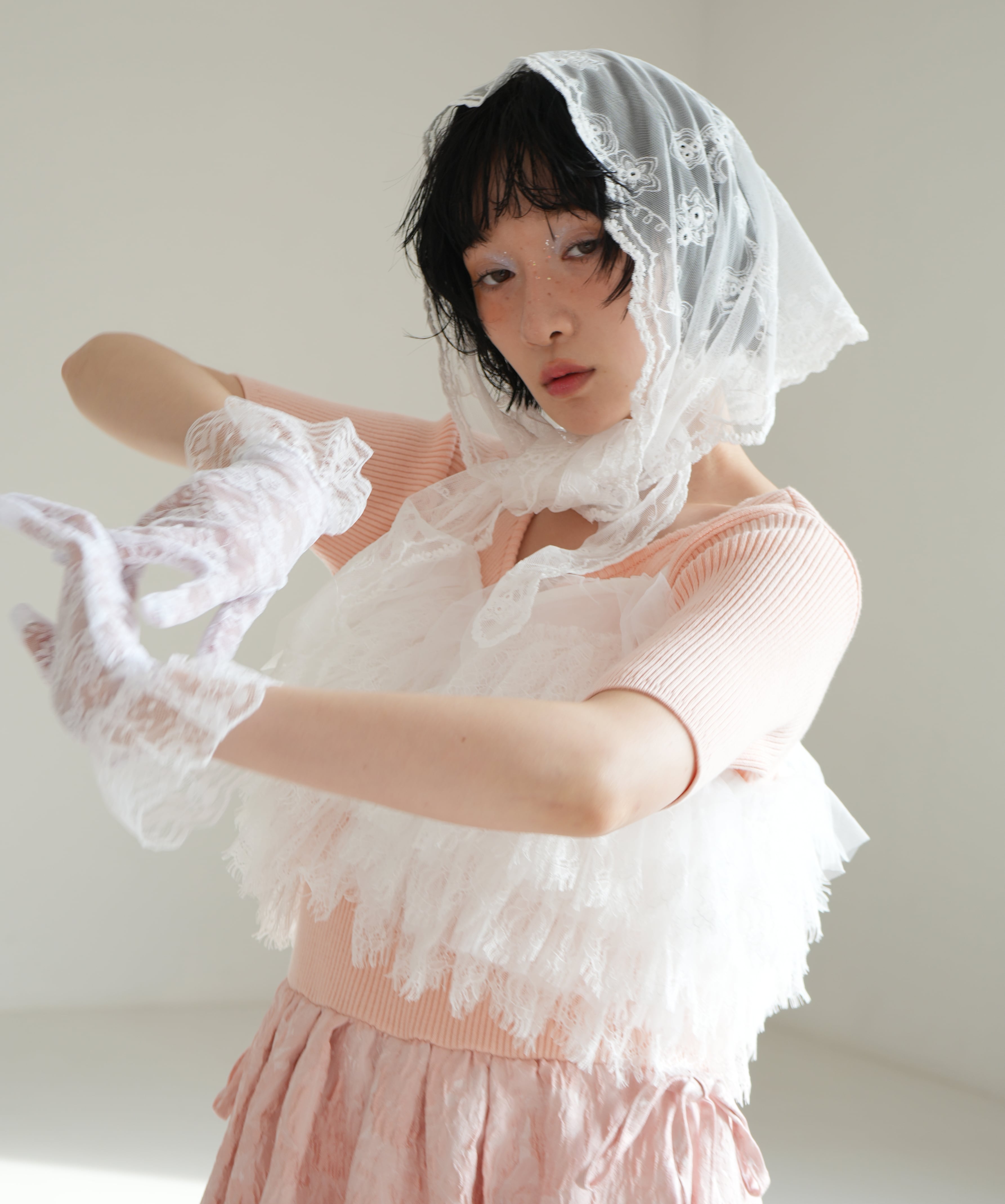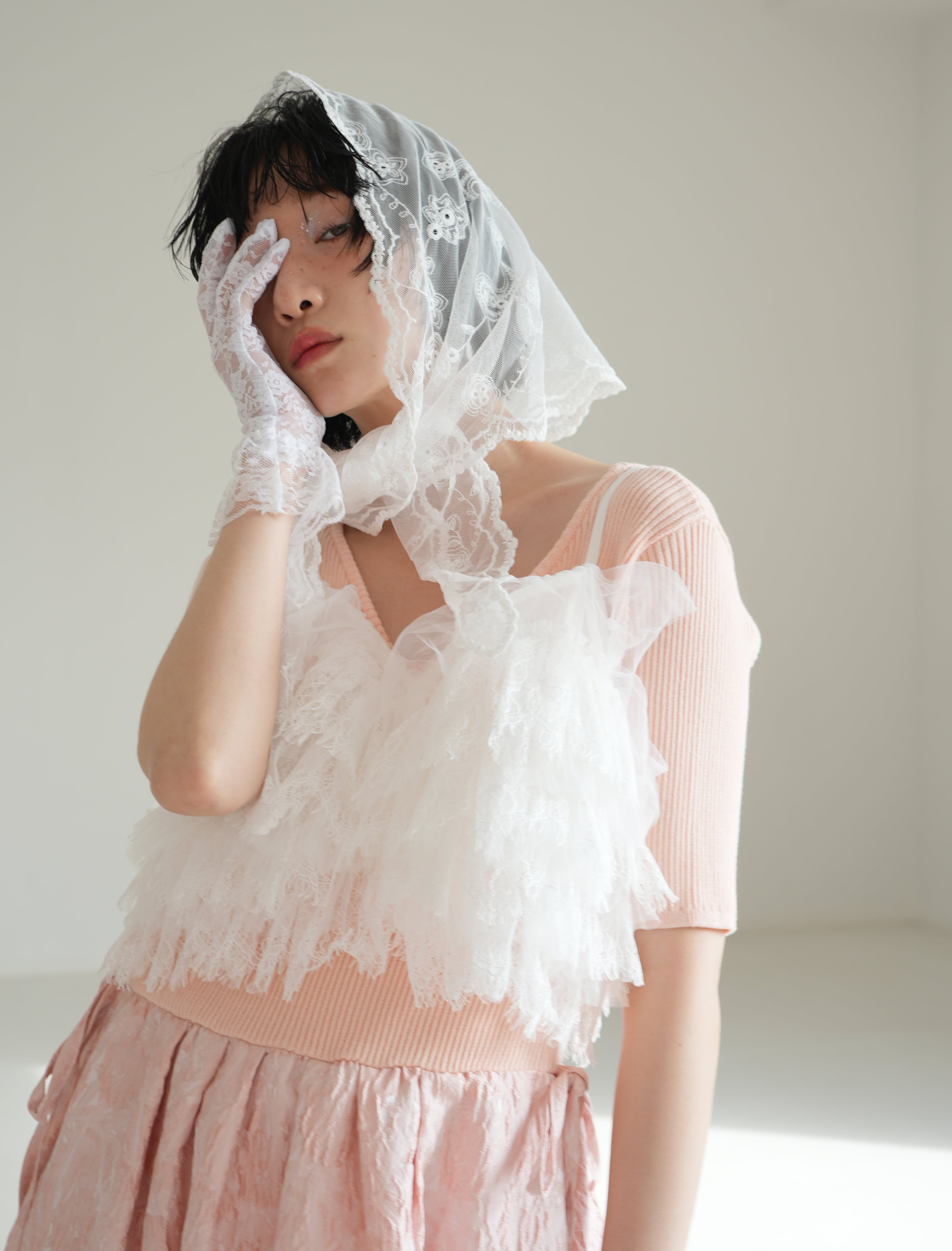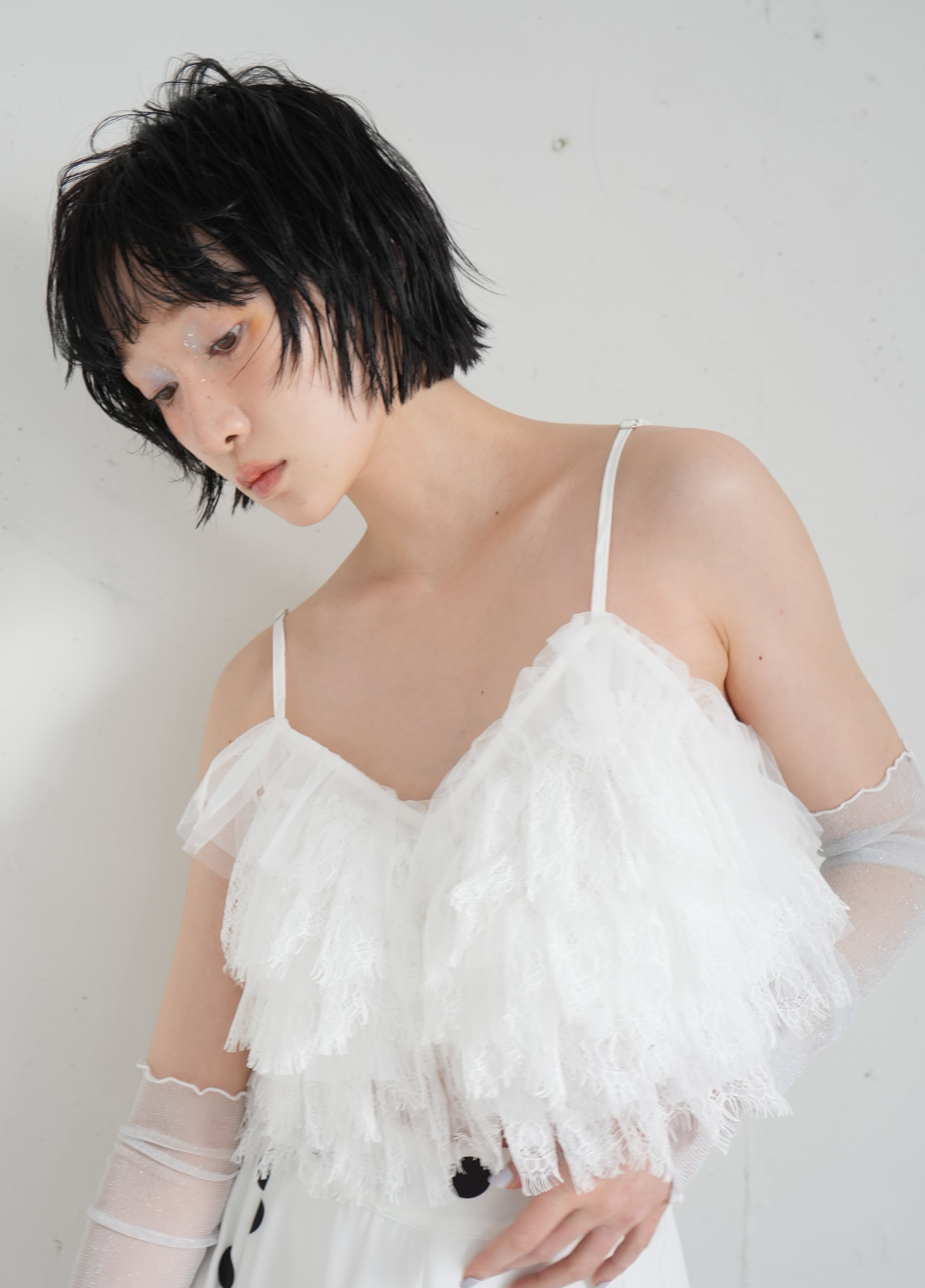 ■ 素材 土台布:ポリエステル100% チュール:ポリエステル100% レース:ポリエステル100%