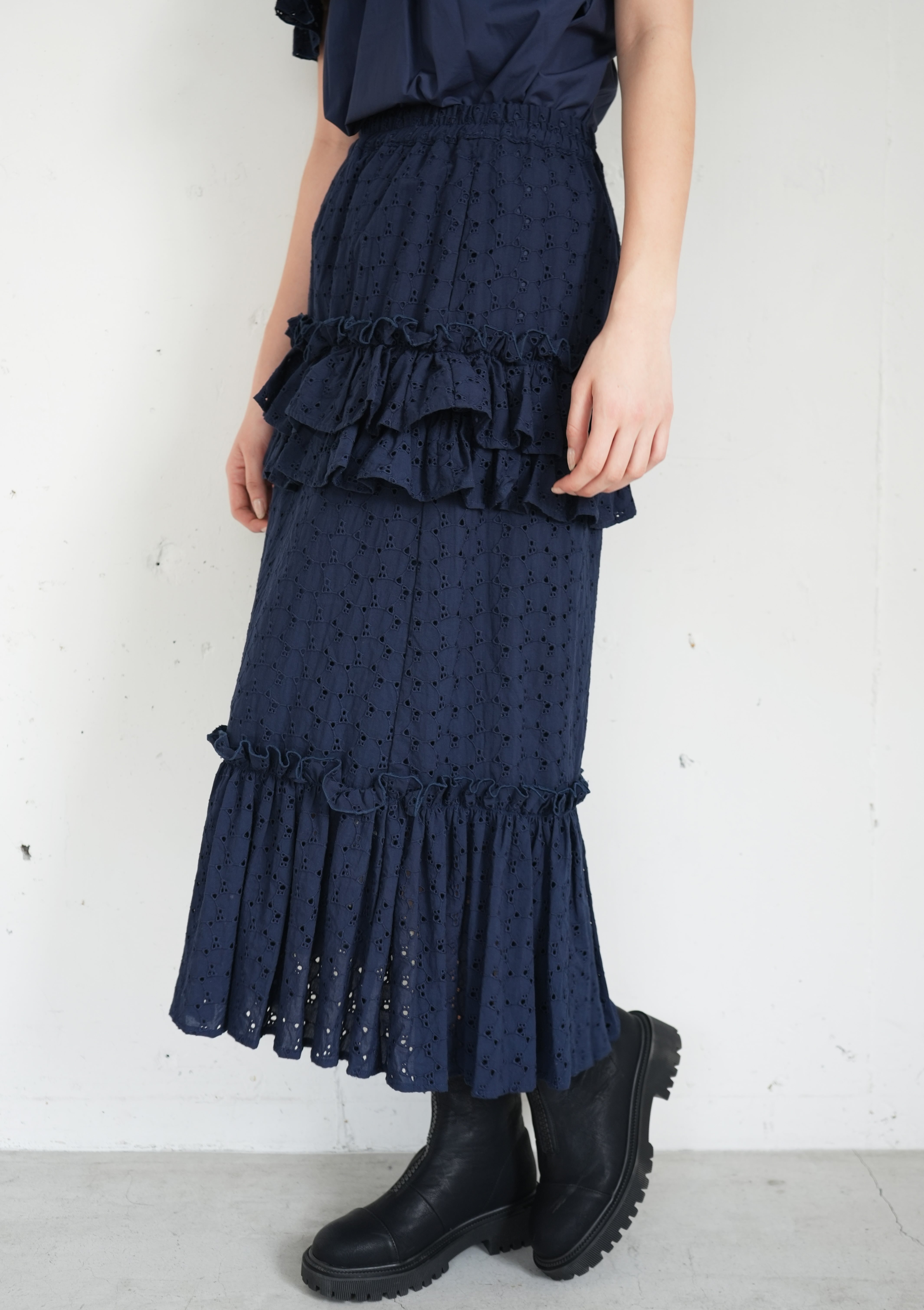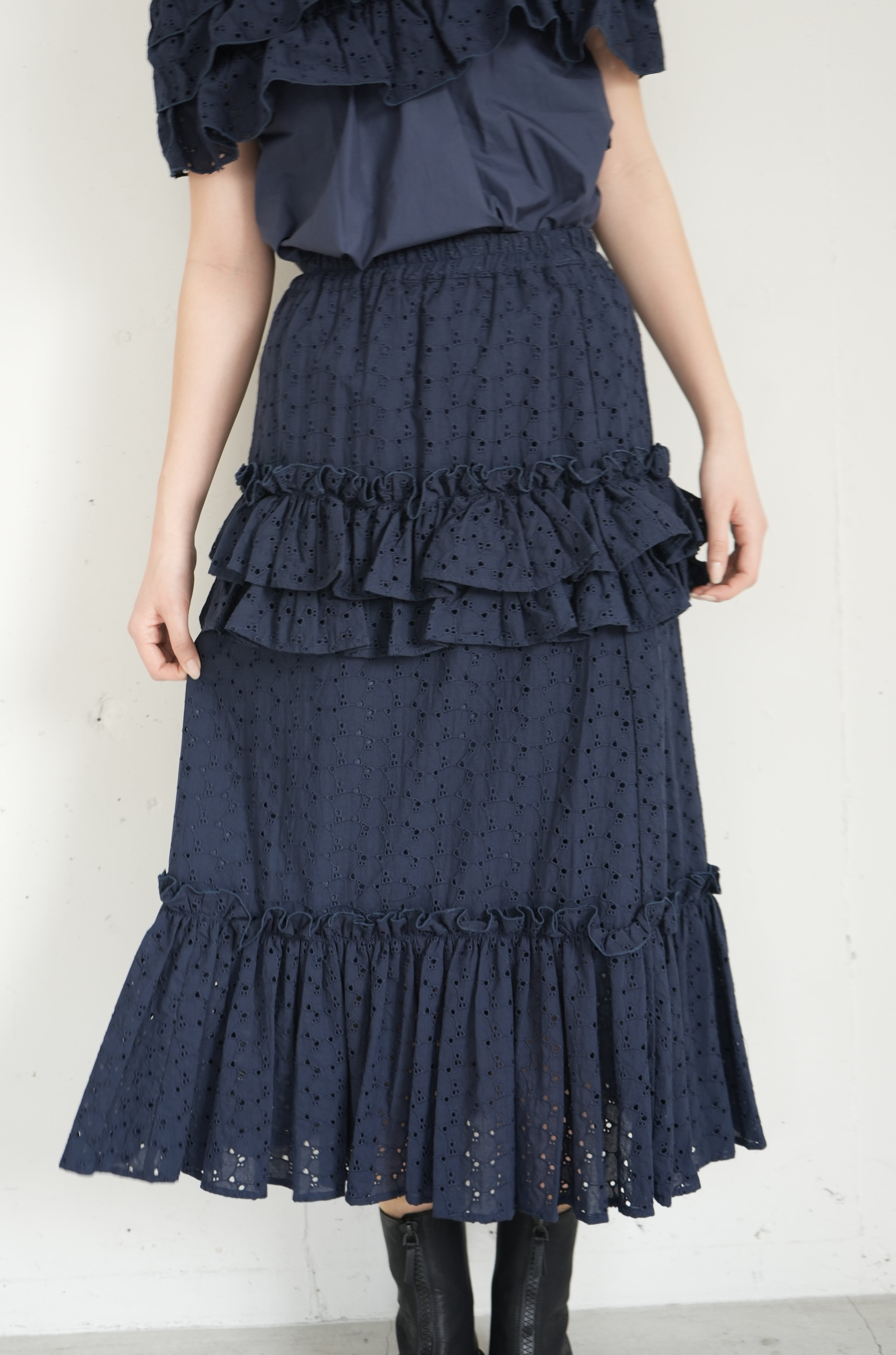 ハートエンブロイダリー ティアードレーススカート/Navy(SIS10010)