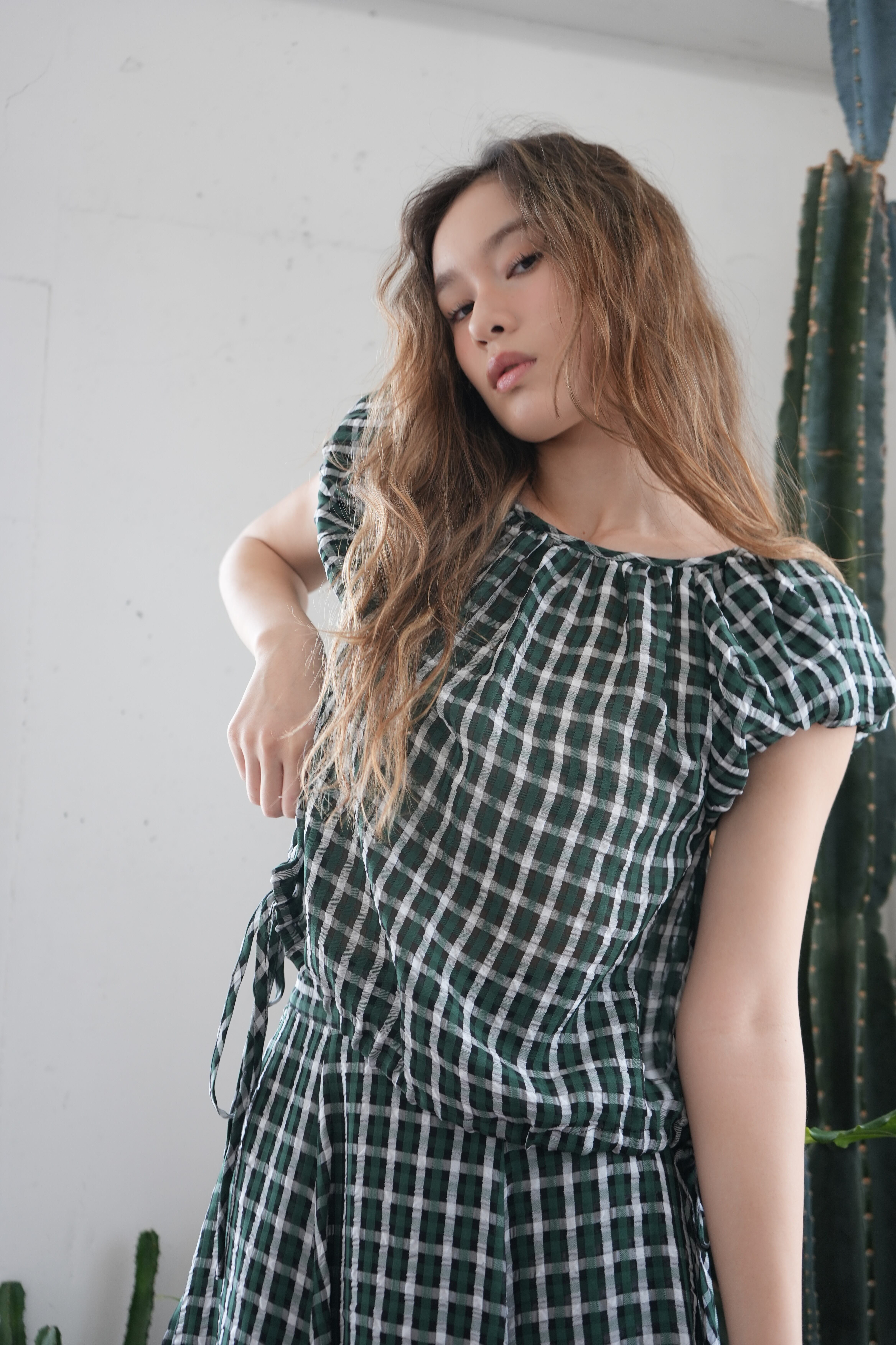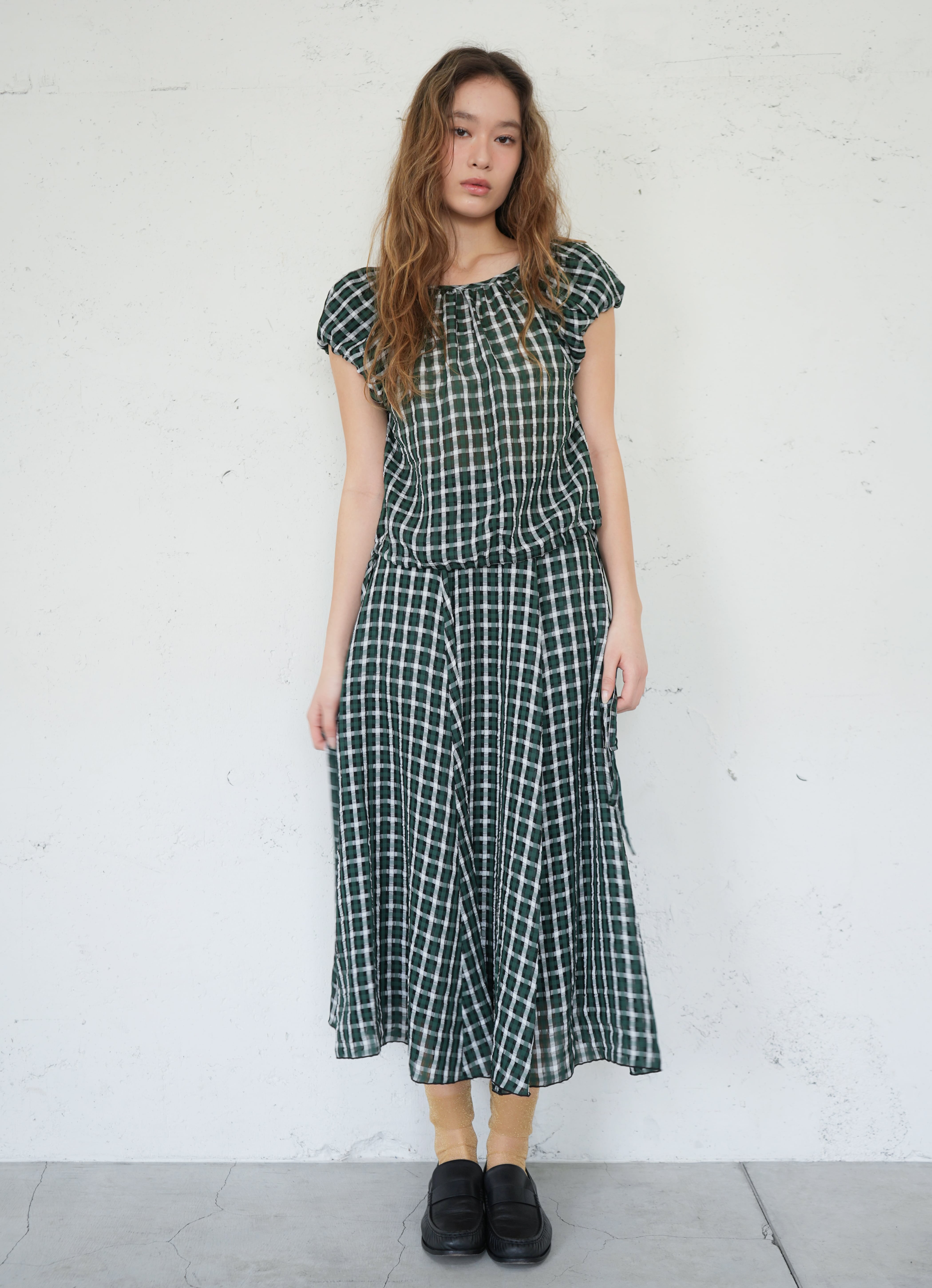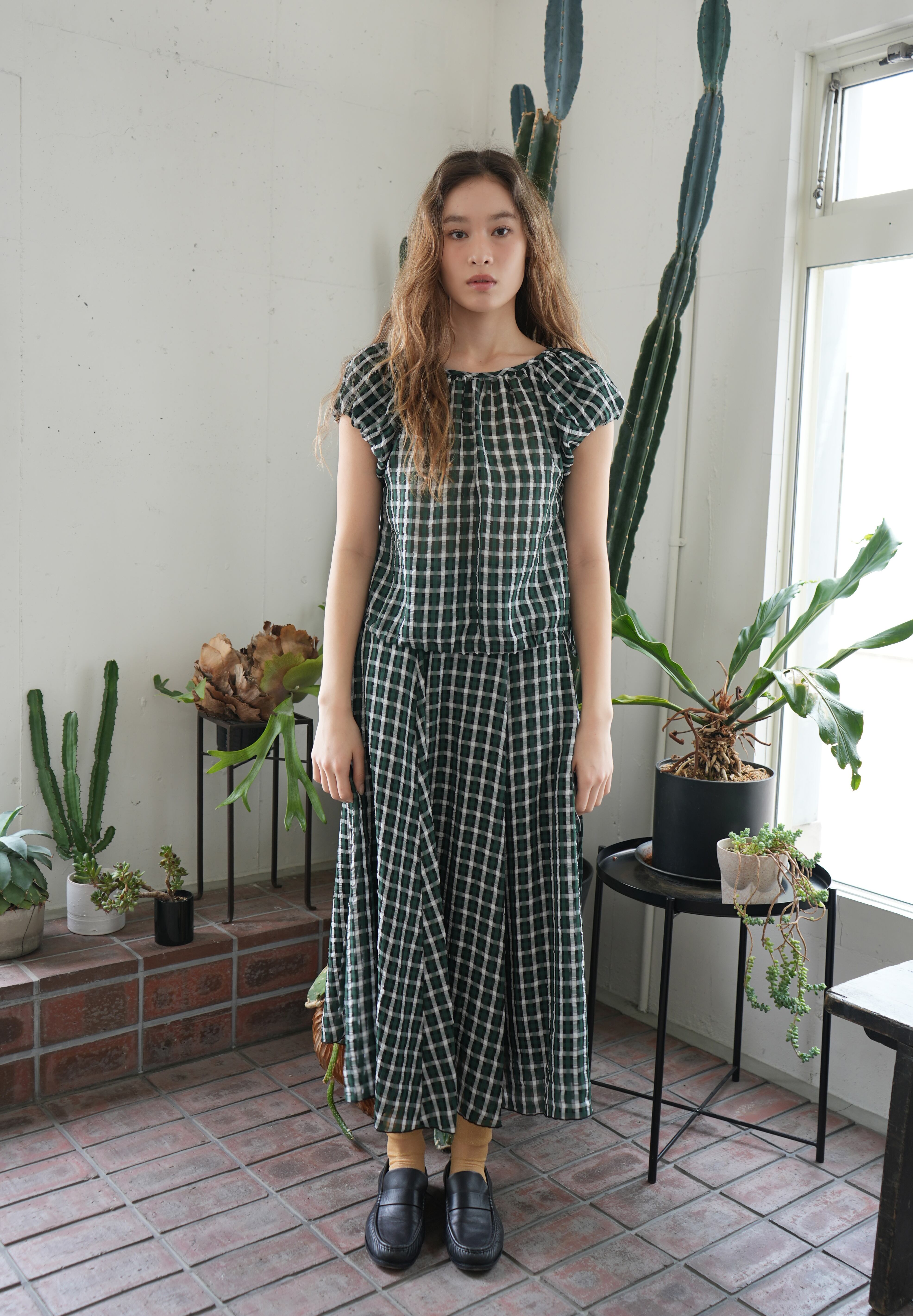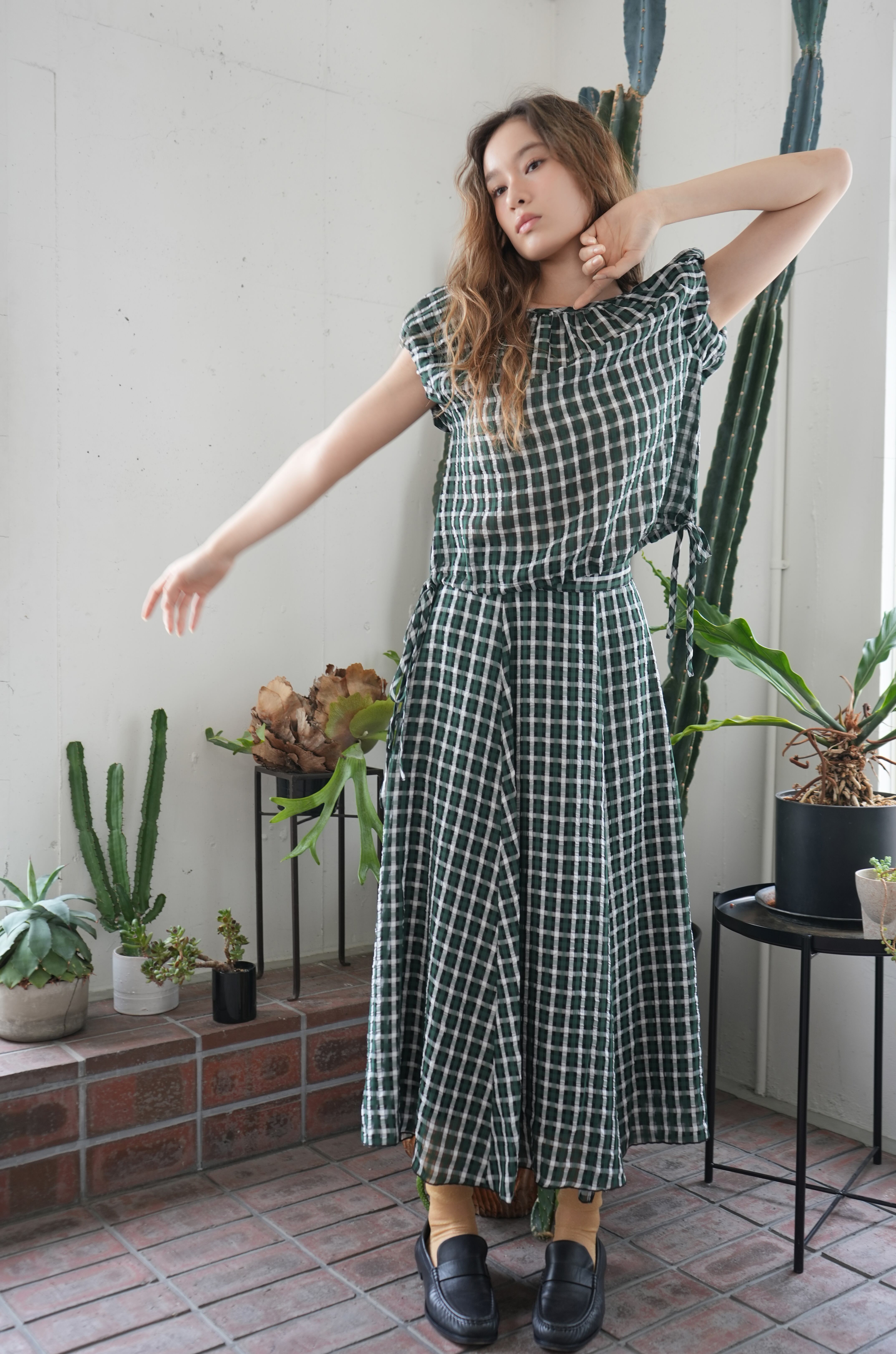 シアーチェックリボンセットアップ/Green(SIS10021)