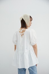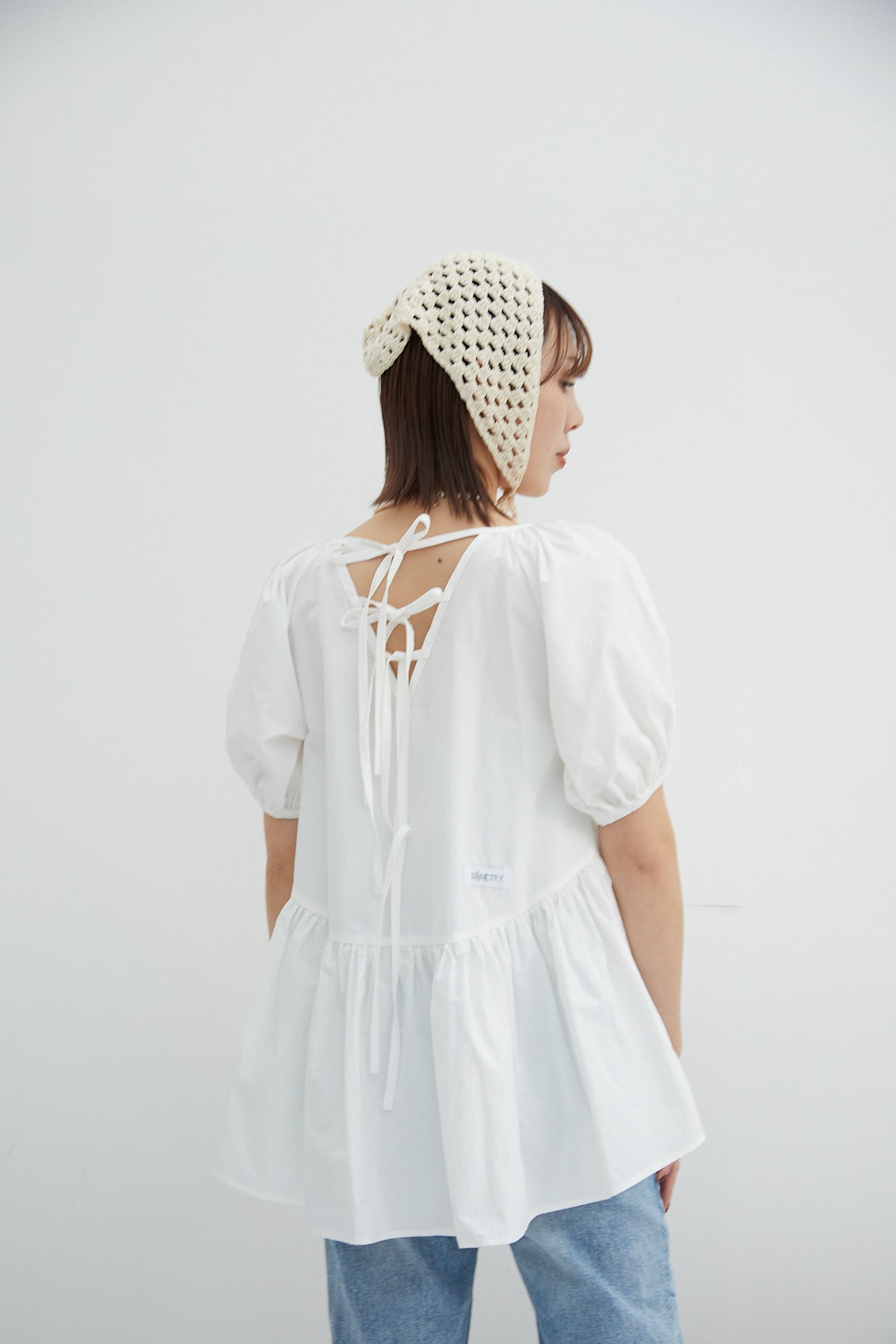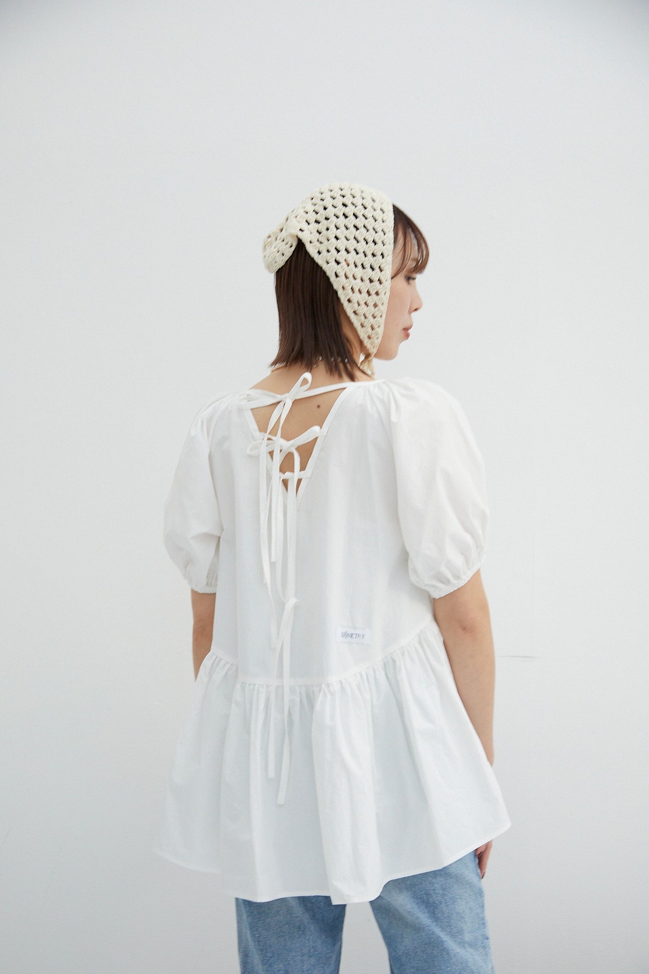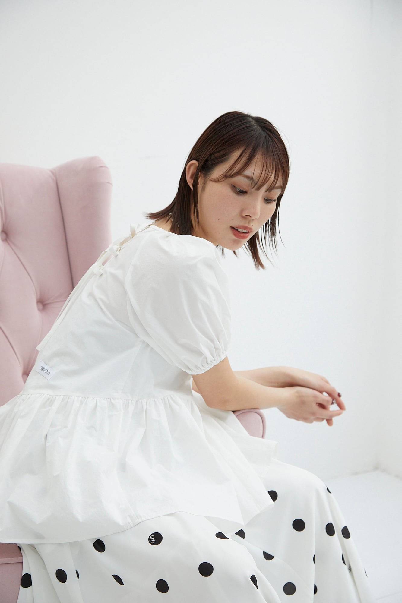 タイプライターバックリボンフィッシュテールブラウス/White(SIS10015)