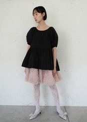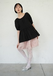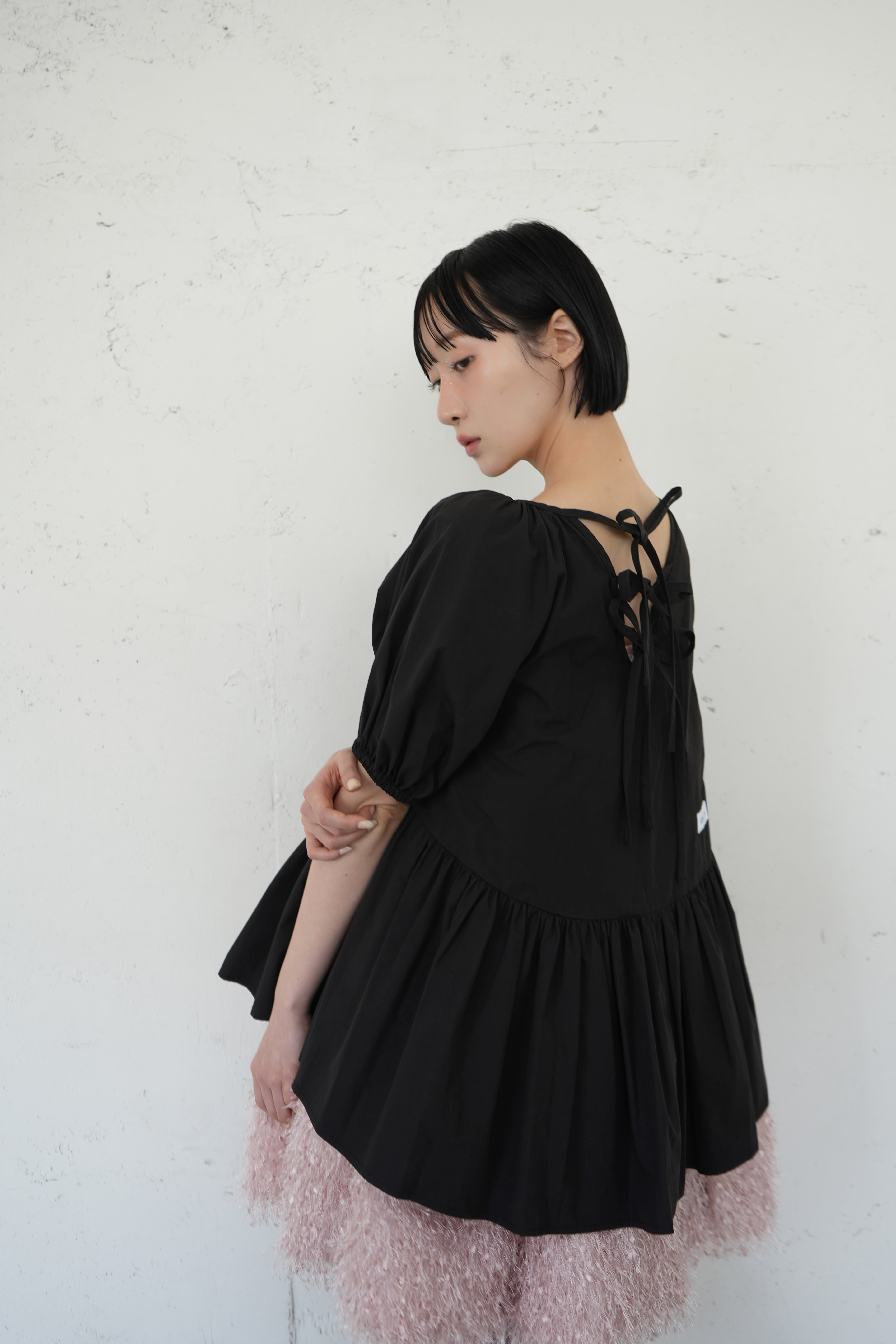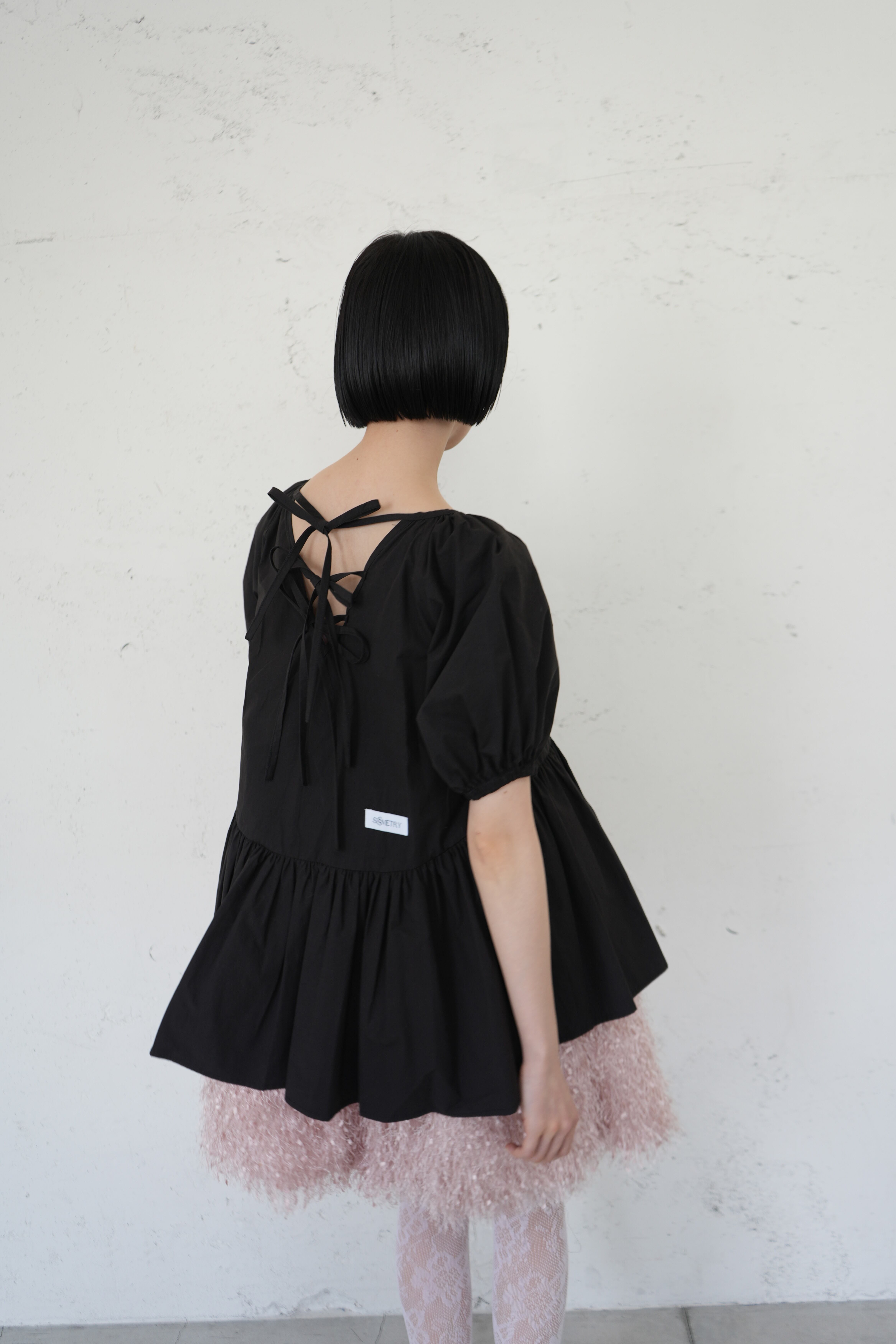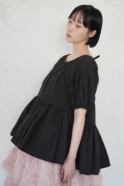 タイプライターバックリボンフィッシュテールブラウス/Black(SIS10017)