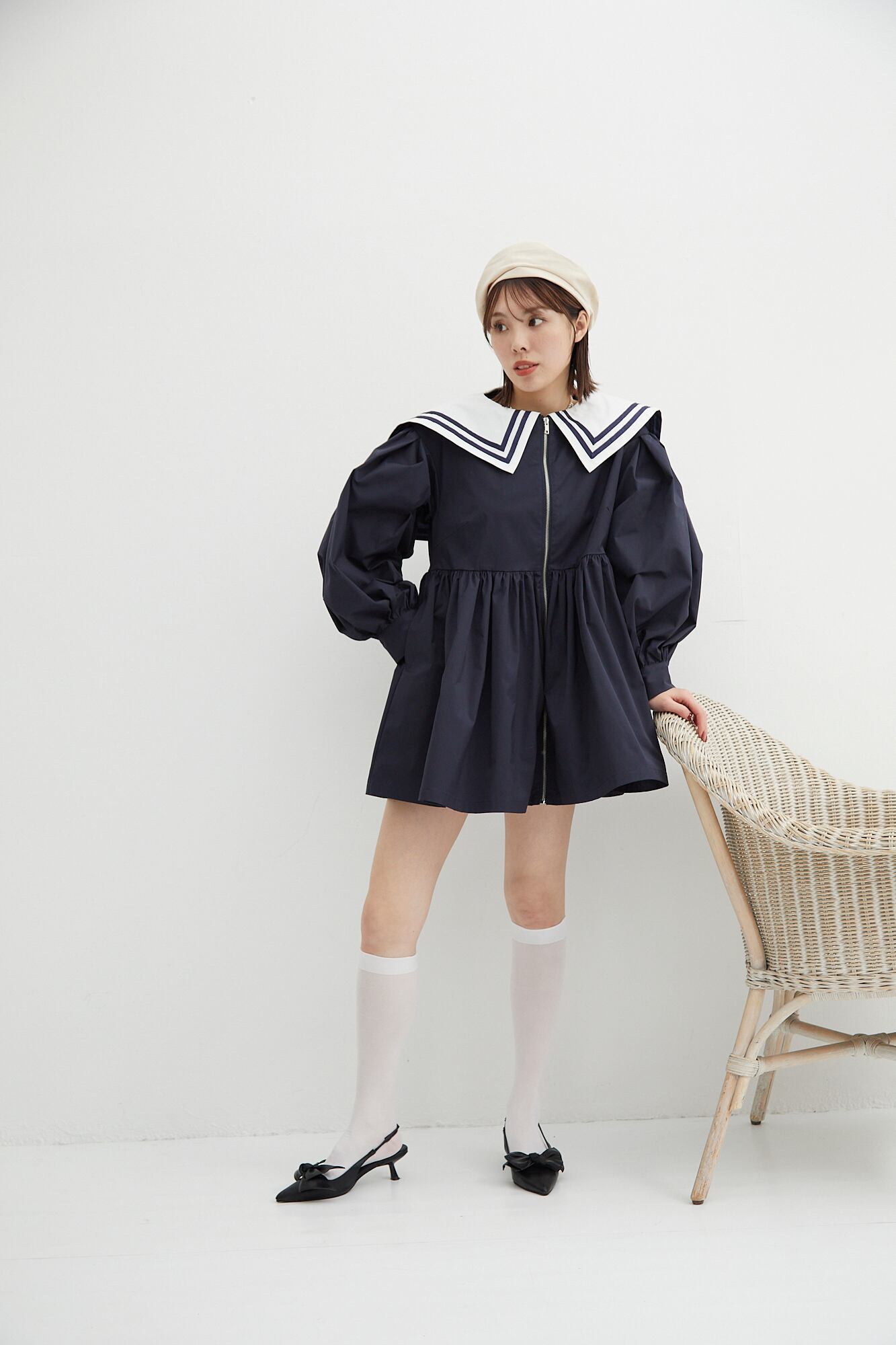 シックなネイビーの遊び心のあるセーラーカラードレスジャケット